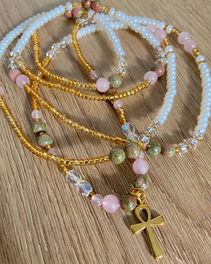 Avoid showering & sleeping in this strand to minimise damage to crystals and charms.