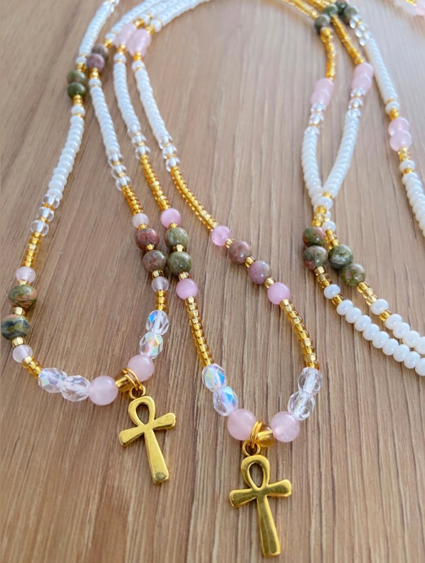 P.S please ensure that you measure yourself correct *Choose the exact size of how you want it to sit, as this strand comes with a screw on clasp, which is non adjustable, ensure that the size you select is not too exact, factor that your stomach bloats up and down throughout the day and month.
